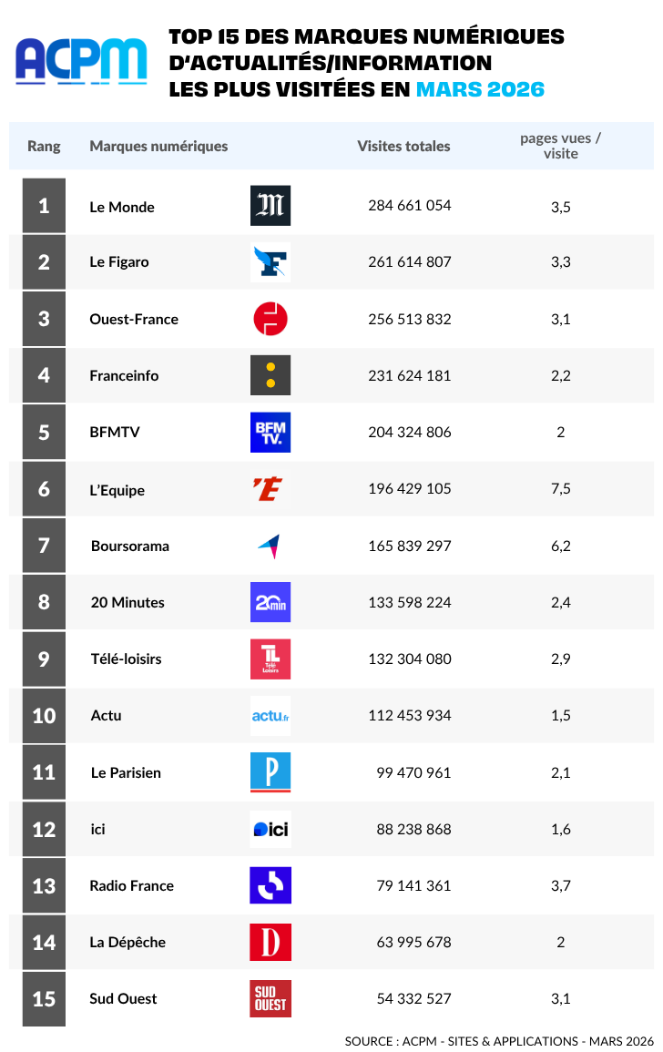 Retrouvez l’ensemble des chiffres des 273 marques médias numériques adhérentes à l’ACPM en cliquant sur le lien ci-dessous :