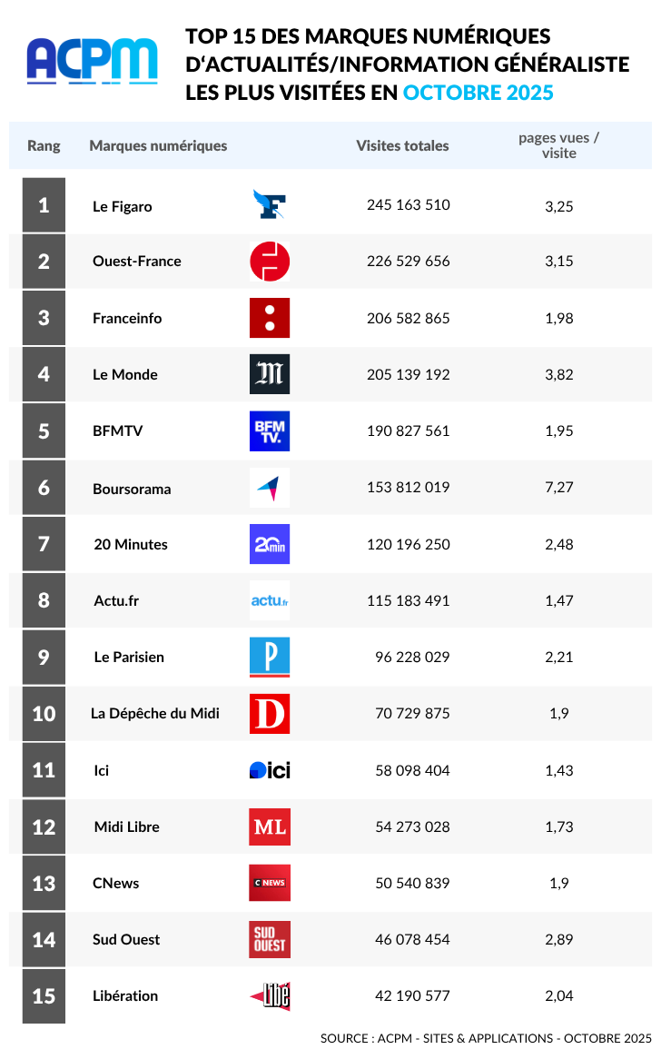 Retrouvez l’ensemble des chiffres des 265 marques médias numériques adhérentes à l’ACPM en cliquant sur le lien ci-dessous :