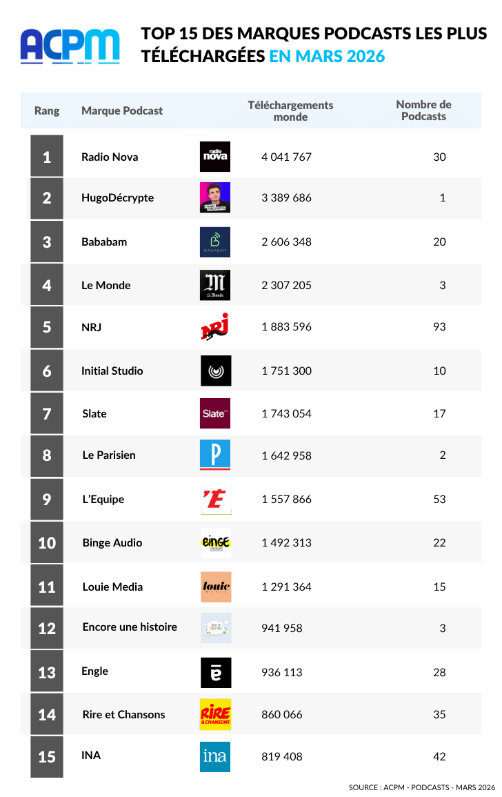 En Mars, un total de 33 millions de téléchargements a été enregistré sur l’ensemble des 797 podcasts certifiés.