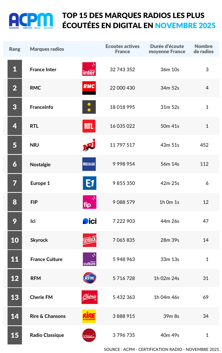 Focus : Marques Radios les plus écoutées en France